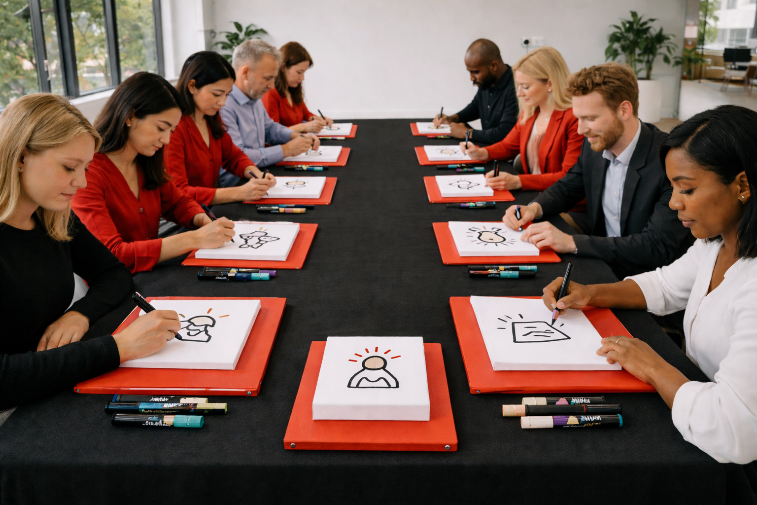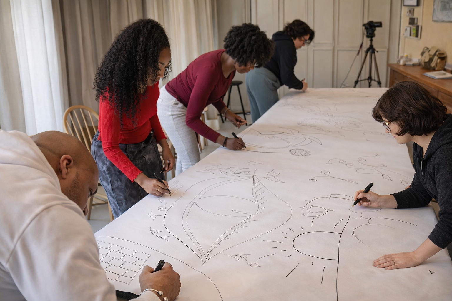 Het tekenen fungeert als denkruimte en maakt gesprekken mogelijk die in een normale werkomgeving vaak geen plek krijgen.